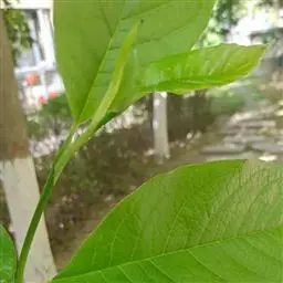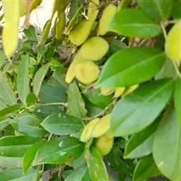 醉香含笑缺铁黄叶病在枝梢顶端幼嫩叶片首先发生褪绿,叶肉变黄色或淡黄色,叶脉仍为绿色,随着病情发展,全叶均可变黄至黄白色,此时叶片边缘变灰褐色至褐色坏死;植株生长衰弱,日趋严重,最终死亡。 主要原因为土壤中缺乏铁元素。改良土壤,释放被固定的铁元素,是防治缺铁症的根本性措施;适当补充可溶性铁,可以治疗病症树。