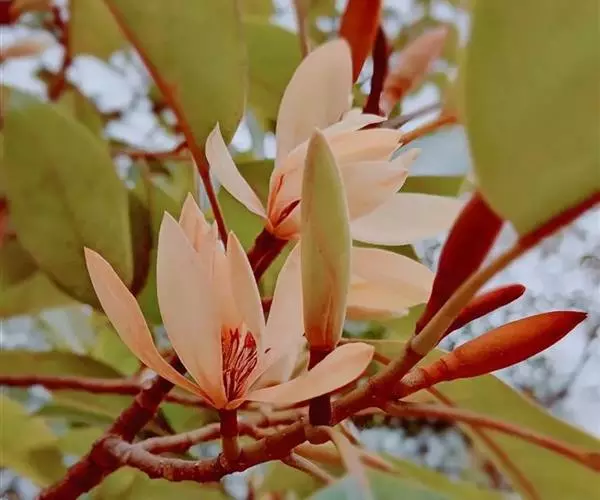 多花含笑是木兰科,含笑属小乔木,高可达20米。芽圆柱形或狭卵形,嫩枝被淡黄色绒毛,老枝无毛,叶革质…