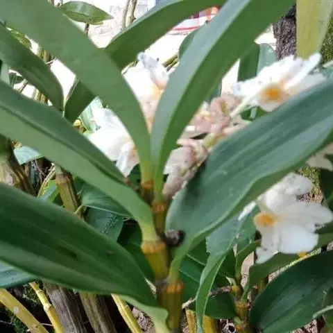 美花石斛是兰科石斛属多年生草本。茎柔弱,斜立或下垂,呈细圆柱形,有时分枝;叶互生于茎上,…