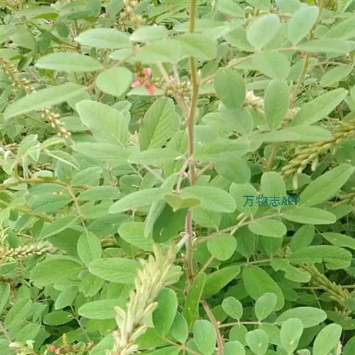 平卧或直立亚灌木,高30-100厘米;多分枝。茎圆柱形,枝、叶柄和花序均被开展长硬毛。羽状复叶长2.5-10厘米;叶柄长约1厘米,叶轴上面有槽,有灰褐色开展毛;小叶3-5对,对生,纸质,倒卵形或长圆形,长3-3.5厘米,宽1-2厘米,先端圆钝,基部阔楔形,两面有伏贴毛,下面较密,侧脉4-6对,不显著;小叶柄长约2毫米。总状花序长10-25厘米,密被锈色和白色混生的硬毛,花小,密集;总花梗较叶柄长;苞片线形,长约4毫米;花梗长约1毫米;花萼长约4毫米,外面有红褐色开展长硬毛,萼齿线形;花冠红色,长4-5毫米,外面有柔毛,旗瓣倒卵状椭圆形,有瓣柄,翼瓣与龙骨瓣等长,有瓣柄,距短小;花药卵球形,顶端有红色尖头;子房有淡黄棕色长粗毛,花柱无毛。荚果线状圆柱形,长1.5-2厘米,径2.5-8毫米,有开展长硬毛,紧挤,有种子6-8粒,内果皮有黑色斑点;果梗下弯。花期7-9月。果期10-12月。