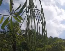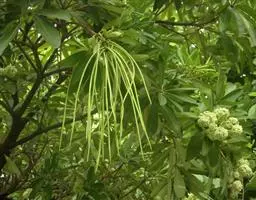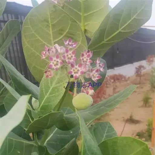 牛角瓜(学名:Calotropis gigantea (L.) Dry.ex Ait.f.)是直立灌木,高达3米,全株具乳汁;茎黄白色,枝粗壮,幼枝部分被灰白色绒毛。叶倒卵状长圆形或椭圆状长圆形,长8-20厘米,宽3.5-9.5厘米。聚伞花序伞形状,腋生和顶生;花序梗和花梗被灰白色绒毛。蓇葖单生;种子广卵形,长5毫米,宽3毫米;种毛长2.5厘米。花果期几乎全年。