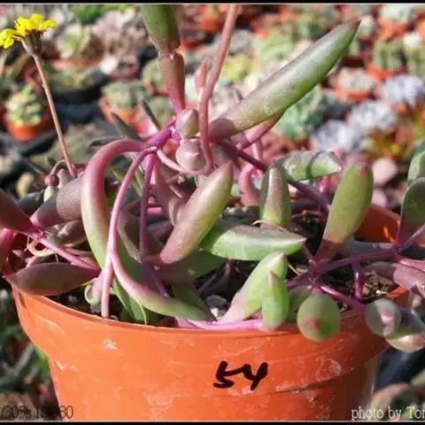 紫玄月是菊科厚敦菊属多年生肉质草本植物。蔓长30-60厘米;茎紫色;叶对生或互生茎上肉质,…