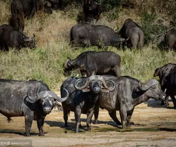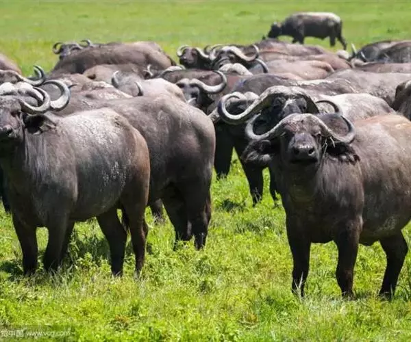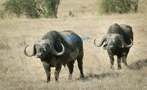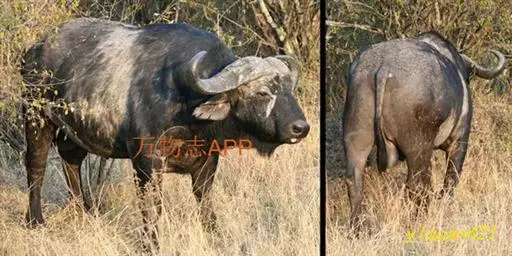 非洲野水牛:共有5个亚种。头体长2.1-3.4米,身高1-1.7米,体重300-900千克。胸膛宽…
