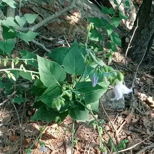 荠苨形态 多年生草本,有白色乳汁。根胡萝卜状。茎单生,高40~20厘米,直径可达近1厘米,无毛,常多少之字形曲折,有时具分枝。基生叶心胜肾形,宽超过长;茎生叶具2~6厘米长的叶柄,叶片心形或在茎上部的叶基部近于平截形,通常叶基部不向叶柄下延成翅,顶端钝至短渐尖,边缘为单锯齿或重锯齿,长3~13厘米,宽2~8厘米,无毛或仅沿叶脉疏生短硬毛。花序分枝大多长而几乎平展,组成大圆锥花序,或分枝短而组成狭、圆锥花序。花萼筒部倒三角状圆锥形,裂片长椭圆形或披针形,长6~13毫米,宽2.5~4毫米;花冠钟状,蓝色、蓝紫色或白色,长2~2.5厘米,裂片宽三角状半圆形,顶端急尖,长5~7毫米;花盘筒状,长2~3毫米,上下等粗或向上渐细;花柱与花冠近等长。蒴果卵状圆锥形,长7毫米,直径5毫米。种子黄棕色,两端黑色,长矩圆状,稍扁,有一条棱,棱外缘黄白色,长0.8~1.5毫米。花期7~9月。