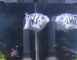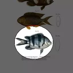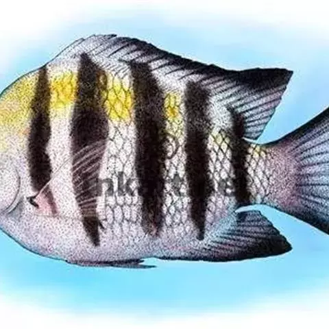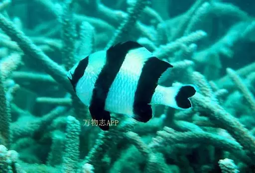 此种鱼数量极少。 体形特征 可达8(厘米)。白色鱼体上有4条黑色横带。 食 性 杂食性,食藻类和浮游生物。