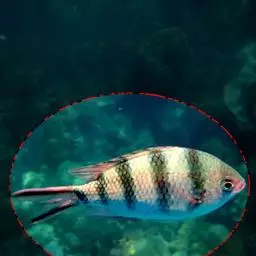 眼斑双锯鱼,背鳍硬棘被橘黄色斑块分割为5-6枚,第4枚最长,约为头长的2.1-2.9倍。胸鳍、臀鳍…