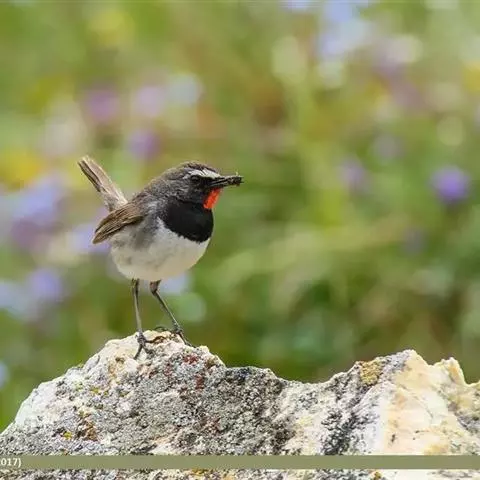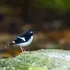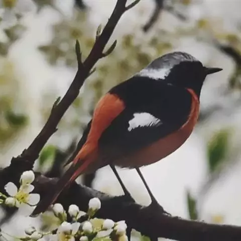 白喉红尾鸲,小型鸟类,体长14-16厘米。雄鸟额至枕钴蓝色,头侧、背、两翅和尾黑色,翅上有一大形白斑,…