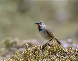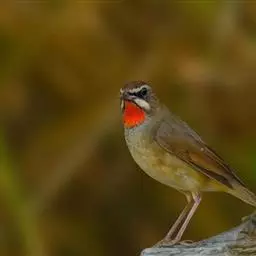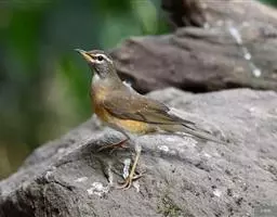 日本歌鸲(学名:Erithacus akahige):体型小似麻雀,但羽毛颜色较为美丽。嘴细长,嘴须不发达;翅短圆,上体草黄褐;雄鸟喉部橙棕色,十分明显,雌鸟却转为淡橙黄色。第一枚初级飞羽短狭;尾长约为跗蹠长度的二倍;跗蹠黑褐色,形粗长而健。特别是雄性,擅长歌鸣。栖止鸣叫时,头部仰起,尾则上下摆动,姿态活跃,鸣声嘹亮,历久不息,非常动听。栖息于灌木丛,常留于近水的覆盖茂密处。走似跳,不时地停下抬头及闪尾,站势直,飞行快速,径直躲入覆盖下。多取食于地面,一般以昆虫为食。分布于中国、日本、韩国、和俄罗斯。