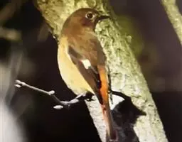 雌性成鸟:上体似雄而稍淡,尾转为淡红褐色;雄鸟的橙棕色变为淡橙黄,胸无黑带;两胁均褐。