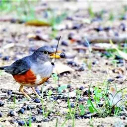 灰头鸫:中型鸟类,体长23-27厘米。整个头、颈和上胸褐灰色,两翅和尾黑色,上、下体羽栗棕色。…