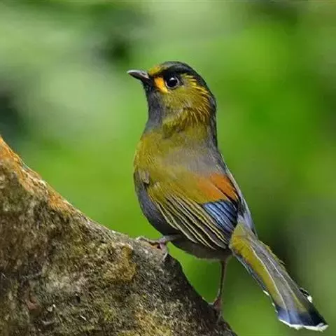 金色林鸲是鹟科、鸲属小型鸟类,体长12-15厘米。头顶至背黄橄榄绿色,眼先和头侧黑褐色,眉纹金橙黄色。…