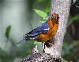 繁殖期五至七月,营巢在林中或河岸岩坡洞穴中,用枯草掩盖,极为隐蔽。巢呈碗状,外壁由枯草茎、草叶、树叶、枯枝及苔藓等构成;内壁由叶柄和细草等编织而成;巢内垫以干草叶和须根。营巢由雌鸟承担。巢筑成后的第二天就开始产卵,每天一枚,每窝产卵5-6枚。卵为卵圆形,呈天蓝或蓝绿色,光滑无斑,仅钝端有一淡色环带。孵卵亦由雌鸟承担。孵化期12-15天。