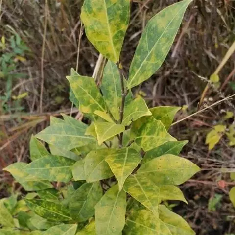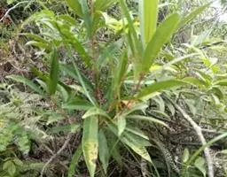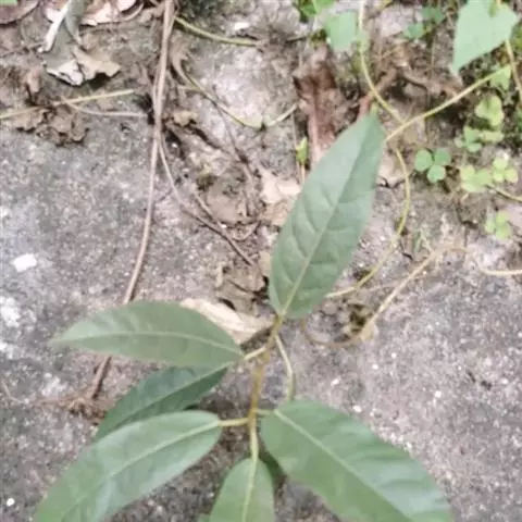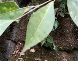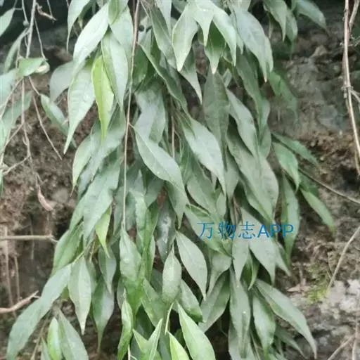 尾尖爬藤榕,攀援灌木,小枝具稀疏柔毛。叶厚纸质,披针形或卵状披针形,干时常皱折,顶端具尾状渐尖,基部宽楔形,叶背网脉明显,蜂窝状。