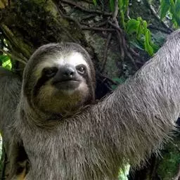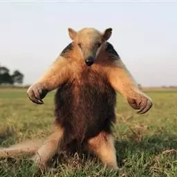 食蚁兽的个头虽然不小,破坏力其实还是有限的,并且只针对可怜的蚁类动物(上代豪门恩怨)。它们头骨长而大致呈圆筒状,从远处看像一个梭子一样,这与其要在灌木、草地间穿梭捕食的习惯有很大关系。大食蚁兽主要以蚂蚁和白蚁为食,一天最多可食30,000只,不过偶尔也吃蜜蜂补充一下糖分,小食蚁兽还吃水果和肉。那食蚁兽是怎么抓到蚂蚁的呢?这都要依靠它们的长舌以及超灵敏的嗅觉。食蚁兽的长舌能灵活伸缩,一头食蚁兽的舌头能惊人地伸到60厘米长,并能以一分钟150次的频率伸缩,同时其上富有超强粘性的混合粘液,沾到它舌头的昆虫一般都逃脱不了