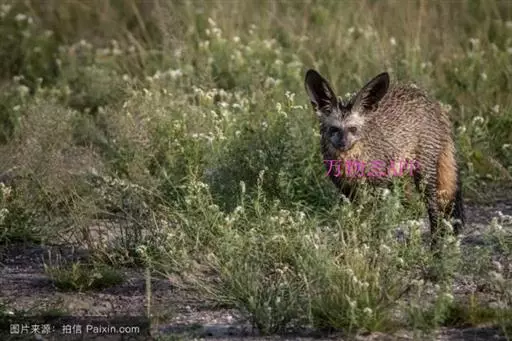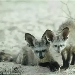 大耳狐(学名:Otocyon megalotis)有蝙蝠翅膀一样的耳朵,最长可达14厘米。实际上,其种名“megalotis” 源自希腊词“mega”和“otus”,意即大耳。一双大耳朵在沟通交流、寻找食物等诸多方面发挥着重要作用。皮毛色彩淡黄至深蜜色不等,具体颜色取决于年龄和发现区域。鼻口比其他狐狸大,呈灰黑色,两侧末梢灰白色。高尖齿,可快速高效咀嚼昆虫食物,以助消化。