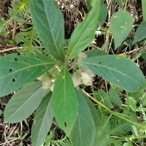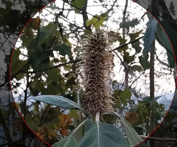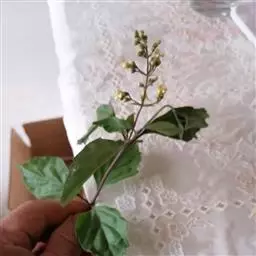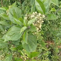 米团花是大灌木至小乔木,高1.5—7米,叶片多破碎,皱缩,黄绿色至黄褐色,完整叶片展平后呈椭圆状披针形,长10-22cm,幼叶两面被绒毛;叶柄长1.5-3cm。