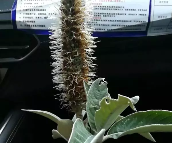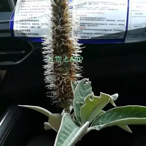 大灌木至小乔木,高1.5-7米,树皮灰黄色或褐棕色,光滑,片状脱落,新枝被灰白色至淡黄色浓密的绒毛,老枝淡棕色,被微柔毛或几无毛。叶柄长1.5-3厘米,有时达4.5厘米,被淡黄色浓密的簇生绒毛;叶片纸质或坚纸质,椭圆状披针形,长10-23厘米或以上,宽5-9厘米或以上,先端渐尖,基部楔形,边缘具浅锯齿或锯齿,有时几为圆齿,幼时两面密被灰白或淡黄色的星状绒毛及丛卷毛,老时上面通常脱落至无毛或仅中脉被微柔毛,背面被浓密灰白或淡黄色的星状绒毛及丛卷毛。花序为由轮伞花序排列成长10-13厘米或以上的顶生稠密圆柱状穗状花序;苞片大,近肾形,先端急尖,全缘或具不规则的齿,外被星状绒毛,果时脱落,小苞片微小,线形,长约1毫米,外密被星状绒毛;花梗短,长约1毫米,密被星状绒毛。花萼钟形,长6-8毫米,外面被浓密的淡黄色簇生星状绒毛及粉囊状小突起,内面无毛而明显可见约15脉,萼齿5(-7),整齐,三角形,长1.5毫米或稍短。花冠白色或粉红至紫红,筒状,长8-9毫米,外面被簇生星状绒毛,冠筒内藏,冠檐二唇形,上唇顶端微凹,下唇3裂,中裂片较大。小坚果长圆状三棱形,顶端平截,背面平滑,腹面具稀疏的半透明小突起,果脐小,位于果的基部,胚小,倒卵形,长为小坚果2/5,有胚乳。花期11月至翌年3月,果期3-5月。