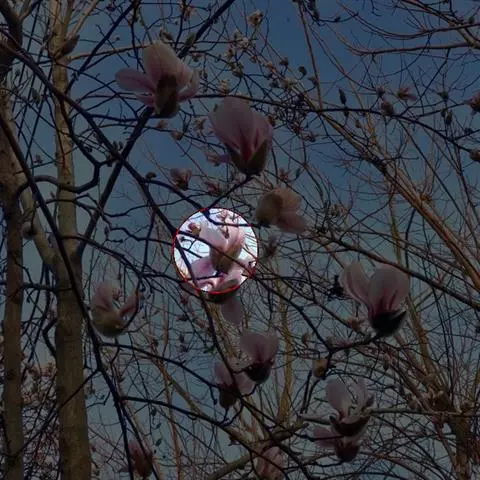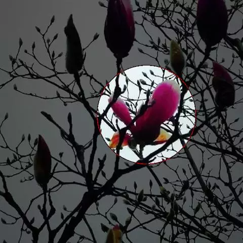 花蕾卵圆形,花先叶开放,浅红色至深红色,花被片6-9,外轮3片花被片常较短,约为内轮长的2/3。雄蕊长1-1.2厘米,花药长约6毫米,侧向开裂,药隔伸出成短尖,雌蕊群无毛,圆柱形,长约1.5厘米。聚合果长约8厘米,直径约3厘米;瞢荚卵圆形或倒卵圆形,长1-1.5厘米,熟时黑色,具白色皮孔。种子深褐色,宽倒卵形或倒卵圆形,侧扁。花期2-3月,果期9-10月。