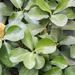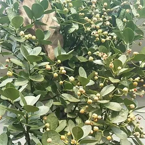 常绿灌木或小乔木,高达8米。 叶光亮革质,倒卵形或窄长椭圆形,长3-6厘米,宽2-3厘米。 聚伞花…