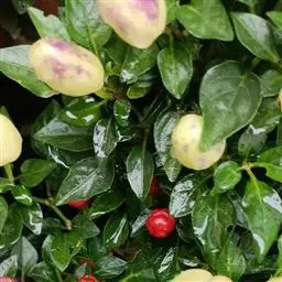 五彩椒是辣椒中之珍品,也是一种优良的盆栽观果花卉,同株果实有绿、黄、白、紫、红五色,鲜艳夺目,具有光泽、点缀于绿叶之中,玲珑可爱。株高约50厘米左右,株产果可达250个,集食用、药用、观赏于一体,辣味素含量是普通辣椒的10倍。