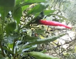 朝天椒茄科辣椒属一年或多年生草本植物;卵形;花通常单只生长于二分叉间,花梗直立,花稍俯垂,…