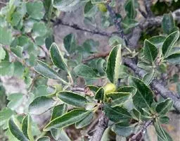 常绿乔木或灌木,高达15米;幼枝被黄灰色密绒毛,小枝被短柔毛,老枝紫红色,有2个托叶刺,1个斜上,另1个钩状下弯。叶纸质至厚纸质,卵形、矩圆状椭圆形,稀近圆形,长2.5-6厘米,宽1.5-4.5厘米,顶端圆形,稀锐尖,基部近圆形,稍偏斜,不等侧,边缘具细锯齿,上面深绿色,无毛,有光泽,下面被黄色或灰白色绒毛,基生3出脉,叶脉在上面下陷或多少凸起,下面有明显的网脉;叶柄长5-13毫米,被灰黄色密绒毛。