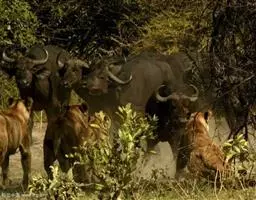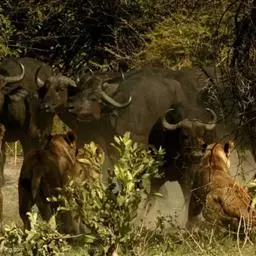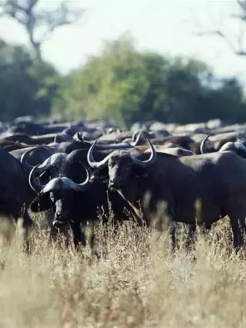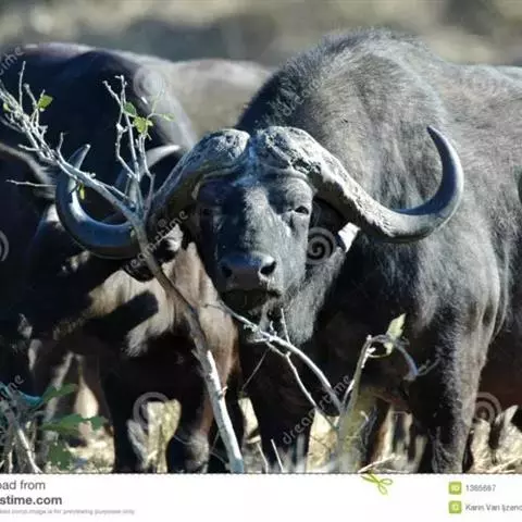 非洲野水牛:共有5个亚种。头体长2.1-3.4米,身高1-1.7米,体重300-900千克。胸膛宽…