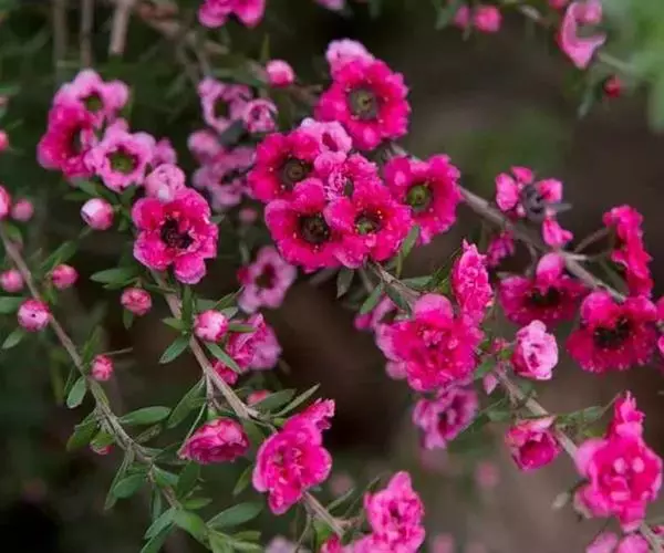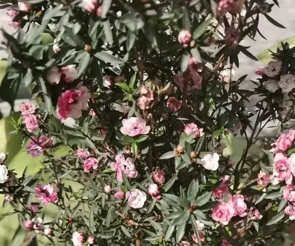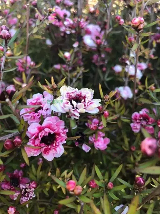 松红梅,拉丁学名(Leptospermum scoparium),常绿小灌木,桃金娘科,是近年来引进的园林花卉品种。