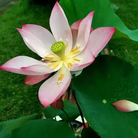 花蕾圆桃型,黄绿色,花径8-10cm,半重瓣型,着花较少,雌蕊发育正常。 碗莲