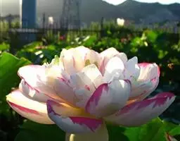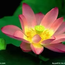 单生于花梗顶端,花直径5~10厘米,花瓣少者20余枚,多者100枚以上,嵌生在花托穴内。有红、粉红、白、紫黄、绿等色,或有彩纹、镶边。坚果椭圆形,种子卵形。莲子倒胚珠生长。 [1-2]