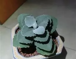 蓝黛莲是一种景天科厚叶草属植物。叶片呈略扁的圆柱形,排列成莲座状;颜色为灰绿色,…