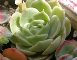 景天科风车草属的多肉植物,原产于墨西哥。株形和风车草属胧月极为相似。花瓣被蜡,叶排成延长的莲座状被…