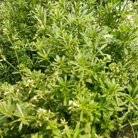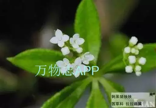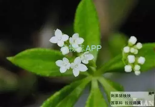 六叶葎 Ehrend. & Schönb.-Tem. ex R. R. Mill)是茜草科拉拉藤属的一年生草本。常直立,有时披散状,高10-60厘米左右,近基部分枝,有红色丝状的根;茎直立,具疏短毛或无毛;叶片薄,纸质或膜质,长圆状倒卵形、倒披针形、卵形或椭圆形顶端钝圆而具凸尖;聚伞花序顶生和生于上部叶腋,苞片常成对披针形,花冠白色或黄绿色,裂片卵形,雄蕊伸出;果近球形,单生或双生,密被钩毛;花期4-8月;果期5-9月。六叶葎分布于中国北、山西、陕西、甘肃、江苏、安徽、浙江、江西、河南、湖北等地,印度、巴基斯坦、尼泊尔、锡金、不丹、缅甸、日本、朝鲜、俄罗斯均有栽培。生于海拔920-3800米的山坡、沟边、河滩、草地的草丛或灌丛中及林下。六叶葎味甘,性平,具有清热解毒、利尿消肿的功效,可用于治疗尿路感染、赤白带下、痢疾、痛肿、跌打