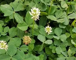 白车轴草,豆科车轴草属的多年生草本植物,茎贴地匍匐;叶柄直立,小叶心形,边缘具细齿,叶脉明显,…