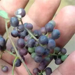 蘡薁,葡萄科葡萄属落叶藤本植物,枝条细长有棱角,叶掌状,有三到五个深裂,缘有钝锯齿,…