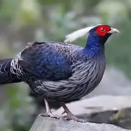 蓝鹇是雉科、鹇属一种大型雉类。体长50-80厘米。雄鸟头颈黑色,羽冠白色,有时杂以黑斑;脸红色,…