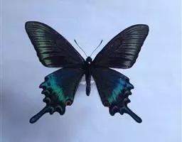 天堂凤蝶翅展可达105mm。前、后翅自基角至后缘约1/2~2/3端为纯净的宝蓝色,后角至后缘1/3…