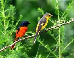 赤红山椒鸟为山椒鸟科山椒鸟属的鸟类,俗名红十字鸟、朱红山椒鸟。雄鸟红色,雌鸟黄色。…