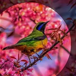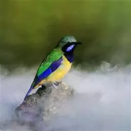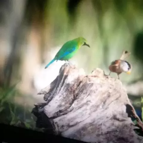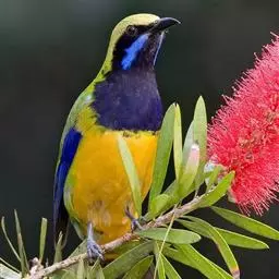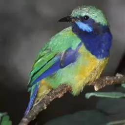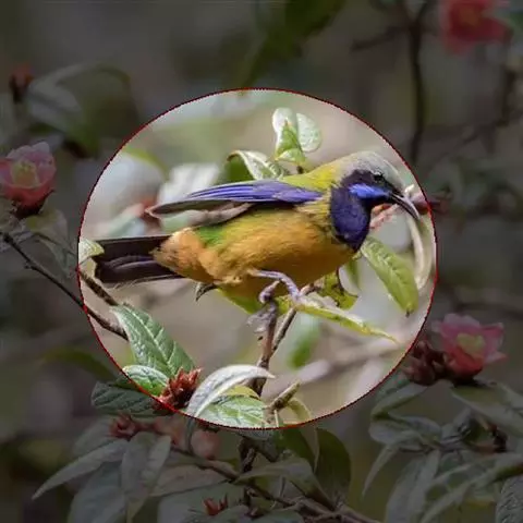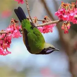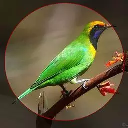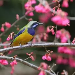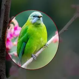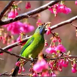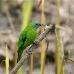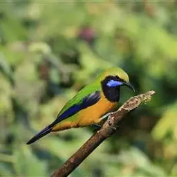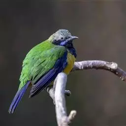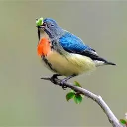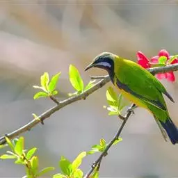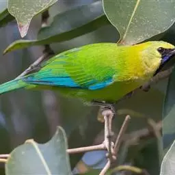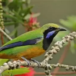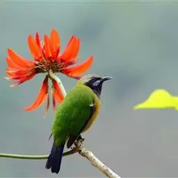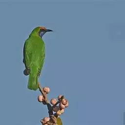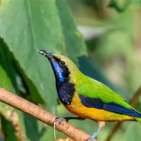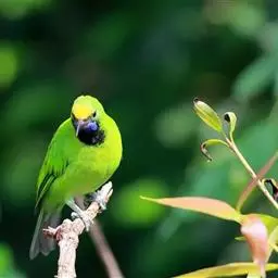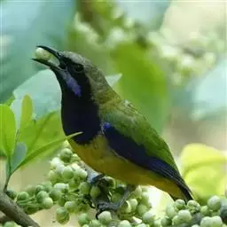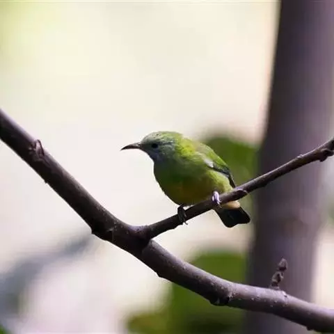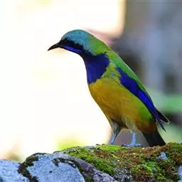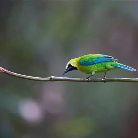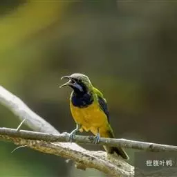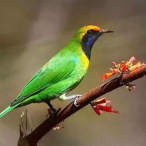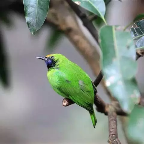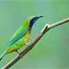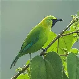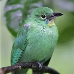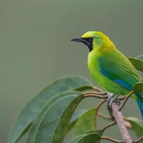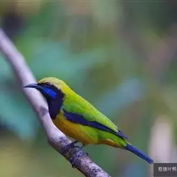 蓝翅叶鹎:小型鸟类,体长15-18厘米。雄鸟通体草绿色,尾蓝绿色,肩和翅亮蓝 色,胸缀有黄色,…