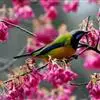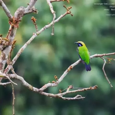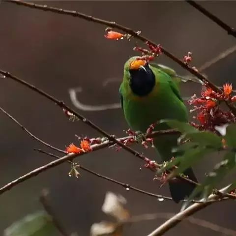 金额叶鹎是和平鸟科、叶鹎属的鸟类。体长16-20厘米。额和头顶前部金桔色,整个上体包括两翅表面草绿色。…