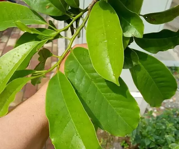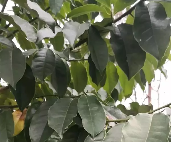 叶薄革质,倒卵形,狭倒卵形或长圆状倒卵形,长 6.5-15(16)厘米,宽3.5-6.5(7)厘米,先端骤狭短渐尖,或短渐尖,尖头钝,基部楔形或阔楔形,上面深绿色,有光泽,侧脉每边9-12(15)条,网脉稀疏;叶柄长1.5-2.5厘米,有明显托叶痕,上面具张开的沟,嫩时被微柔毛,后脱落无毛。