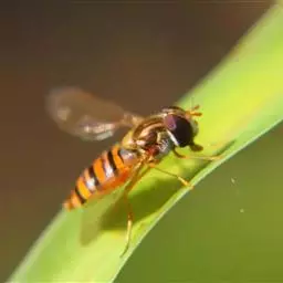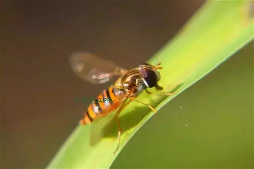 黑带食蚜蝇 体长7-11毫米,翅长6.50-9.50毫米。头黑色,被黑色短毛.头顶宽约为头宽的1/7.单眼区后方密覆黄粉。额大部分黑色覆黄粉,背较长黑毛,端部1/4左右黄色。腹部第五节背片近端部有一长短不定的黑横带,其中央可前伸或与近基部的黑斑相连。