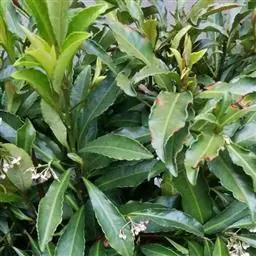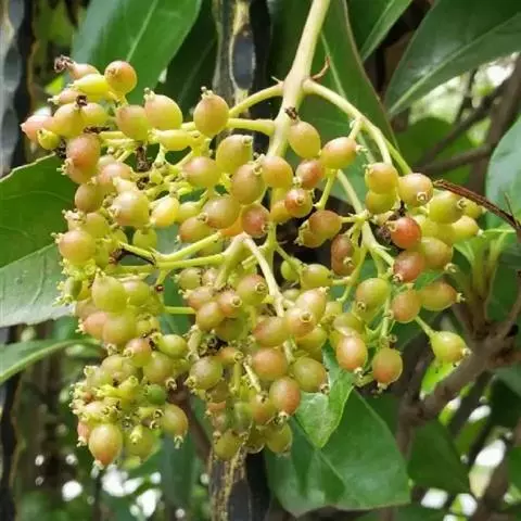 常绿荚蒾(学名:Viburnum sempervirens K. Koch)是忍冬科荚蒾属植物,常绿灌木;高可达4米;当年小枝淡黄色或灰黄色,四角状,散生簇状短糙毛或近无毛。叶革质,干后上面变黑色至黑褐色或灰黑色,椭圆形至椭圆状卵形。复伞形式聚伞花序顶生,无毛或近无毛,直径3-5厘米,有红褐色腺点。果实红色,卵圆形,长约8毫米;核扁圆形,腹面深凹陷,背面凸起,其形如杓,直径3-5毫米。花期5月,果熟期10-12月。