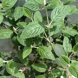 常绿灌木;高可达4米;当年小枝淡黄色或灰黄色,四角状,散生簇状短糙毛或近无毛,二年生小枝紫褐色或灰褐色,近圆柱状。叶革质,干后上面变黑色至黑褐色或灰黑色,椭圆形至椭圆状卵形,较少宽卵形,有时矩圆形或倒披针形,长4-12(-16)厘米,顶端尖或短渐尖,基部渐狭至钝形,有时近圆形,全缘或上部至近顶部具少数浅齿,上面有光泽,下面全面有微细褐色腺点,中脉及侧脉常有疏伏毛,侧脉3-4(-5)对,近缘前互相网结或达至齿端,最下一对伸长而多少呈离基3出脉状,上面深凹陷,下面明显凸起;叶柄带红紫色,长5-15毫米,无毛或散生少数簇状笔。