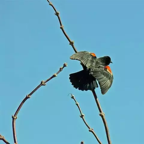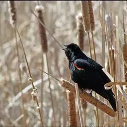 红翅黑鹂,是美洲黑鸟中最出名的是红翅黑鸟,体长19-24厘米,翼展30-37厘米,体重65克,…