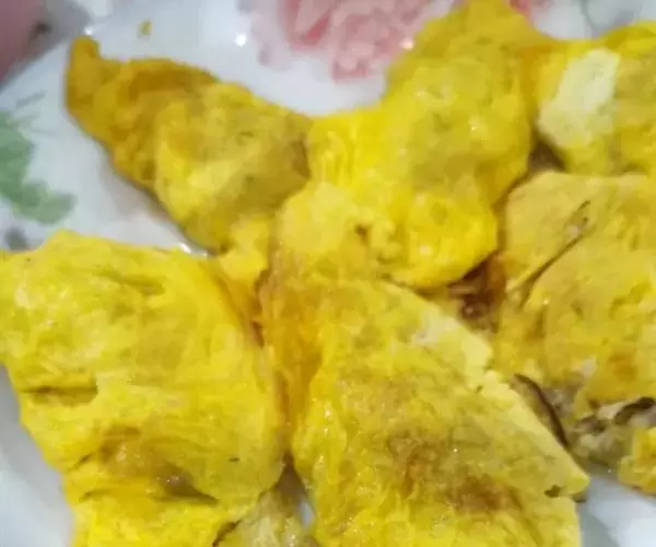 这是地道的家常名菜,蒸蛋饺,蛋饺蒸鸡,蛋饺猪肚…… 小时候,只有过年过节才能见到这道菜上桌,而且是必不可少的一道节日菜之一。全程都是纯手工,一双筷子,一个小铁锅或铁勺,还有一块猪肥肉,这就是包制蛋饺的工具。