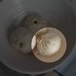 4、用锹或筷子把四周蛋皮翻上包住肉馅。