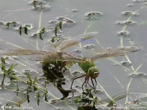 生命周期:一只碧伟蜓生命中有百分之95的时间是从水里度过的,蜻蜓的幼虫叫水虿。由于内脏壁不能够在水中呼吸,它在水中的呼吸频率也加快了很多。所以只能蜕皮羽化了。幼虫一般选择在一个晴朗静谧且风和日丽的夜晚,并且在黑夜的笼罩和掩护下开始魔幻般的变化了。(如果白天羽化的话,会被肉食动物攻击,且白天温度高,翅膀干的太快,容易破裂,这点跟蝉一样)幼虫一旦进入绝食期时,老把腹部朝天【也就是把腹部接近水面进行汲取空气中的氧气】因为它此时已经不能完全像以往那样子在水中用腮进行呼吸了,所以只能在水面和空气的交界处进行呼吸,当它们的水下呼吸系统关闭的时候,他们就别无选择的要在空气当中去了。羽化时本能会促使它离开了生活了很久的水里——由体内的荷尔蒙【一种激素】决定的。