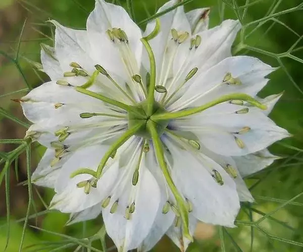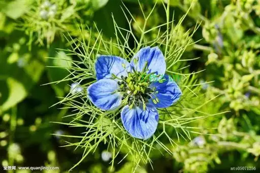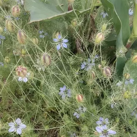 黑种草(学名:Nigella damascena L.)是毛茛科,黑种草属一年生草本,高可达60厘米。茎有疏短毛,中上部多分枝。叶为一回或二回羽状深裂,裂片细,茎下部的叶有柄,花单生枝顶,花萼淡蓝色,形如花瓣,椭圆状卵形,二唇形,雄蕊多数,花药处部钝或微渐尖;果膨胀,基部合生几达中部而形成蒴果,种子多数,扁三棱形,黑色,6-7月开花,8月结果。