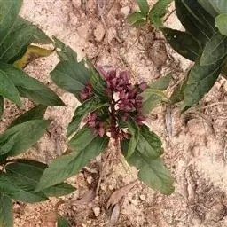叶对生;叶片椭圆状卵圆形,纸质,绿色。轮伞花序6朵以上,密集成顶生穗状花序,花淡红色或蓝色。